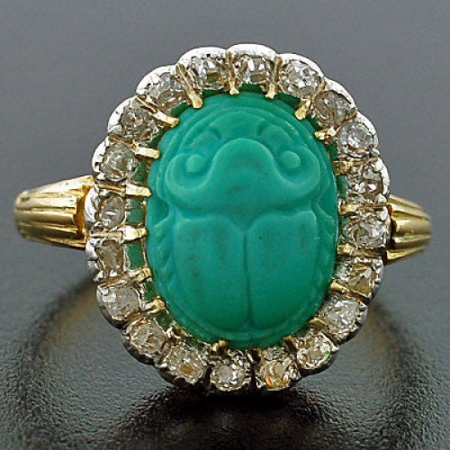 Condition: The overall condition of the ring is excellent. There is no apparent damage to the gold, platinum or to the scarab beetle and all of the diamonds are intact.