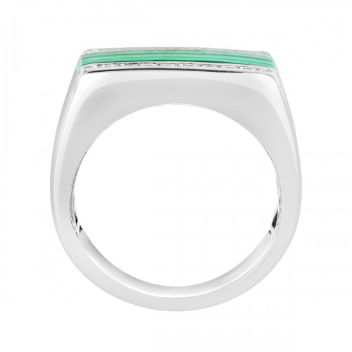 EFFY 20X7MM Rectangle Malachite and White Sapphire Fashion Ring in Rhodium Plated Sterling Silver