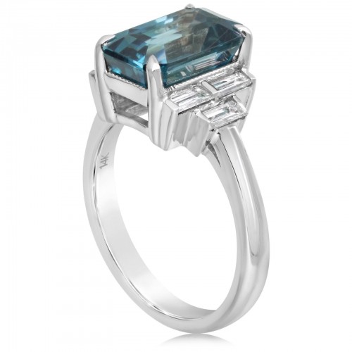 Emerald Cut Blue Zircon & Diamond Ring