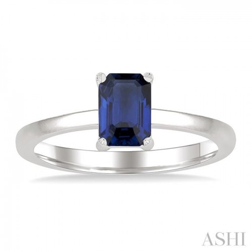 7X5MM Octagon Shape Sapphire Precious Solitaire Ring in 14K White Gold