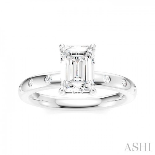 1/6 Ctw Emerald Shape Round Cut Diamond Semi-Mount Engagement Ring in 14K White Gold