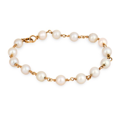 Condition: The bracelet is in overall excellent condition. There is no apparent damage to the gold links, and the spring ring clasp is secure and in working order. All of the pearls are intact and securely attached.