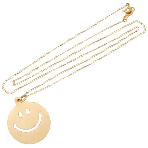 Estate 14k Smiling Face Pendant Necklace