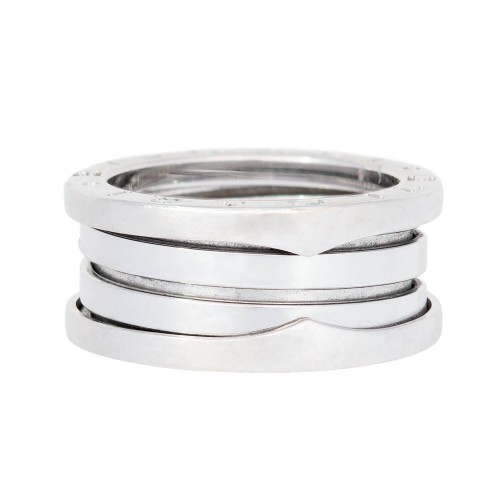 Known as the “B.ZERO 1” ring, this fabulous 18k white gold ring is a signed piece by legendary maker Bvlgari! The ring incorporates a ribbed-like design that is semi-collapsible. The top and bottom of the ring are marked “BVLGARI”. The inside of the band has the markings “52”, “750”, and an Italian hallmark reading “star 2337AL” . The inside of the ring is also stamped “Made in Italy”. The ring has a very chic style that would complement any ensemble, and is a perfect everyday piece for the fashion conscious woman!
