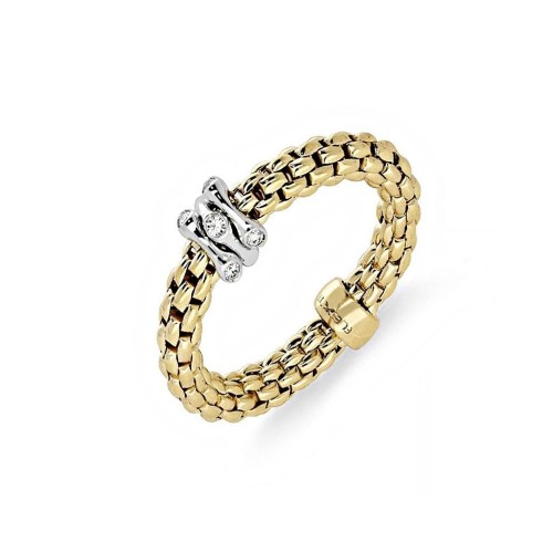 A Fope ring from the Eka Anniversariy collection crafted in 18K yellow gold showcasing .08ctw of diamonds on the rondel center.