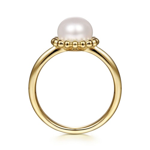Gabriel & Co. 14K Yellow Gold 7.5mm Pearl Ring with Bujukan Beaded Halo