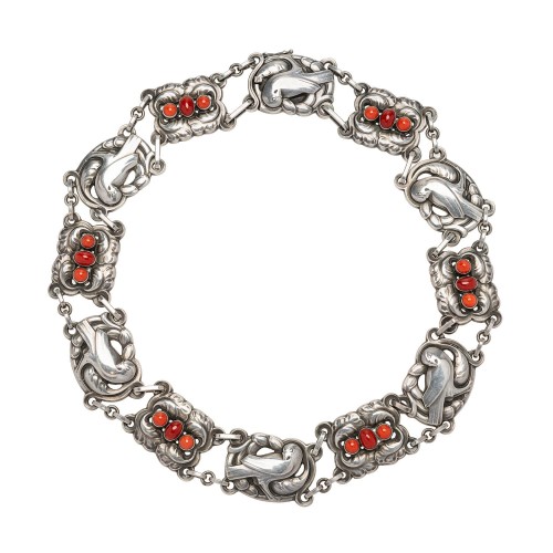 Renowned Danish silversmith Georg Jensen was born in 1866. His training in metalsmithing and his education in the Fine Arts enabled him to develop a successful career based in beautiful jewelry and silver design. His signature Art Nouveau style grew increasingly popular and Jensen became a world renowned artist. Although Jensen died in 1935, his pieces are still being created today using the same craftsmanship as when he was alive.