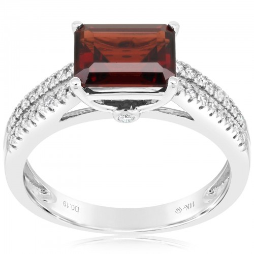14K white gold amethyst and diamond ring from the Reis-Nichols Collection. The ring features one emerald cut amethyst weighing 1 1/10 ctw and 34 brilliant round diamonds weighing approximately 1/5 ctw. Size 6 in stock. Special order sizes also available. Pricing may vary with size.
