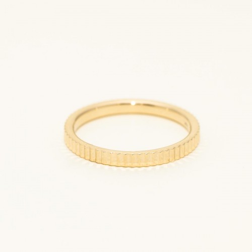 Tactile luxury. This is a ring you’ll find yourself touching all day. A Multi-Groove or ‘Coin Edge’ band features a series of tight, repeating grooves that create a ribbed surface similar to the edge of a coin. In 14kt Yellow Gold, this texture catches the light in a thousand tiny flashes rather than one big glare. Plus, the busy surface is excellent at hiding the scuffs and scratches of daily wear.