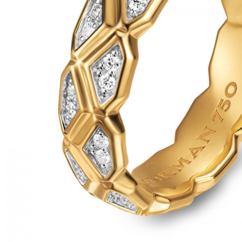 18-karat yellow gold • Pavé-set diamonds, total carat weight ranges from 0.34 to 0.41 (dependent on size) • Ring, 6mm • Size 9