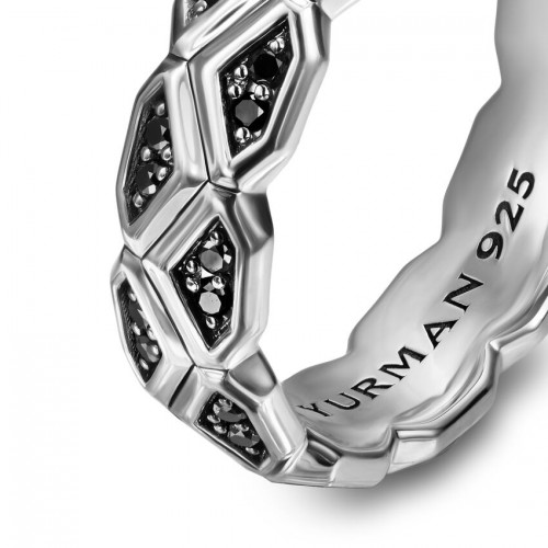 Sterling silver • Pavé-set black diamonds, total carat weight ranges from 0.36 to 0.43 (dependent on size) • Ring, 6mm • Size 9