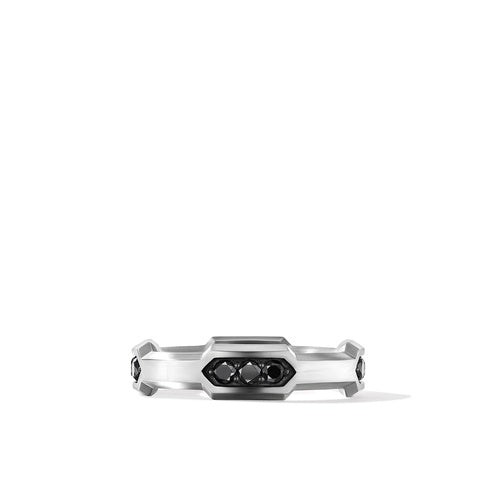 Hex Station Band Ring with Pavé Black Diamonds, Size 10