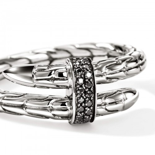 Sterling silver Spear single wrap bypass ring with black sapphires. Size 6 in stock now. Special order sizes also available. Designed by John Hardy.