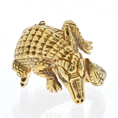 Finely detailed Kieselstein Cord alligator ring, crafted in 18 karat yellow gold.