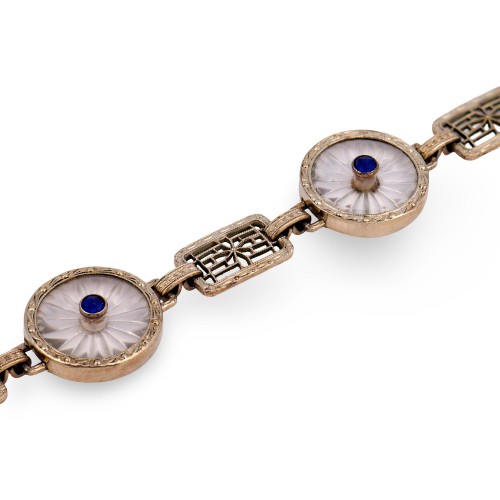 KREMENTZ & CO. Art Deco 14k Rock Quartz Crystal & Sapphire Line Bracelet