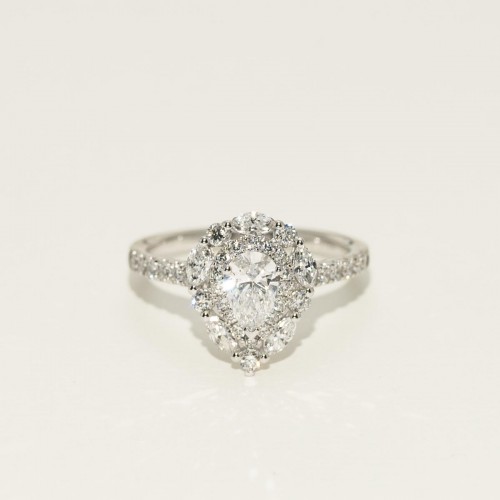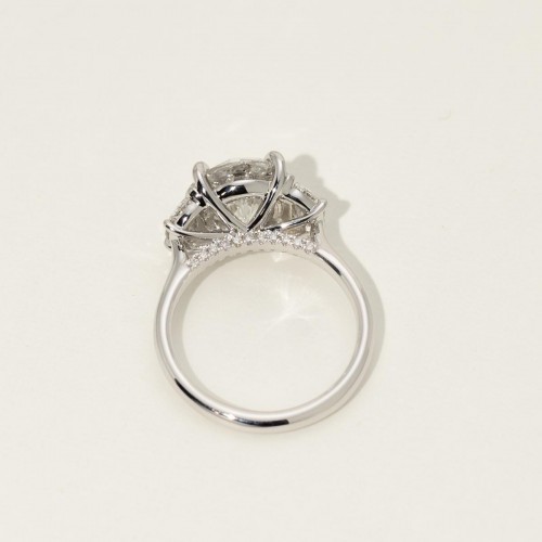 A medley of lab-grown diamonds sparkle in this elegant three-stone engagement ring.