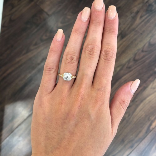 Loretta – 18ct Yellow Gold Round Cut Halo Earth Grown Diamond Engagement Ring K 1/2