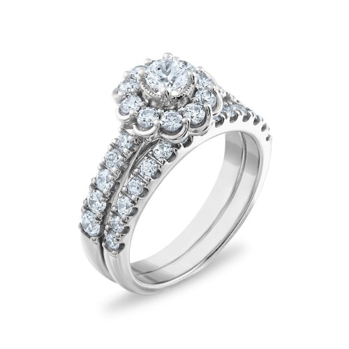 LoveSong 88 EcoLove 1 1/2 CTW Lab Grown Diamond Halo Bridal Set Ring in 14KT White Gold