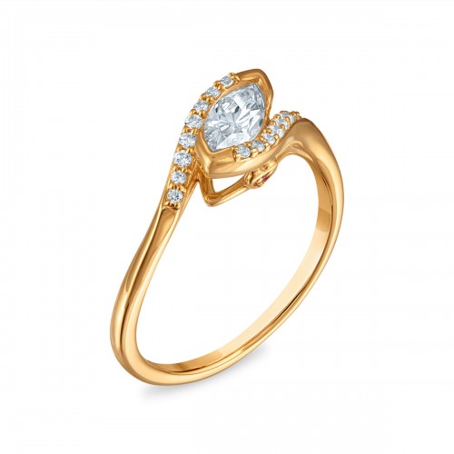 Modern elegance meets timeless sparkle in this captivating ring. Crafted in radiant 10kt yellow gold, the design features a striking East/West-set marquise-cut lab-grown diamond at the center, weighing 3/8 carat. Accentuating the sleek bypass-style shank, 16 round lab-grown diamonds (totaling 1/10 carat) add extra brilliance and contemporary flair. With a total diamond weight of 1/2 carat, this ring is a unique and graceful expression of promise or personal fashion statement.