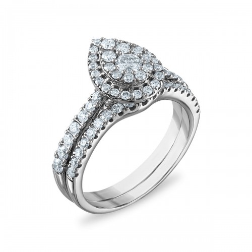 LoveSong EcoLove 1 CTW Lab Grown Diamond Cluster Bridal Set in 10KT White Gold