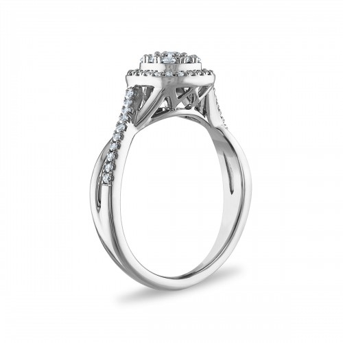 LoveSong EcoLove 3/8 CTW Lab Grown Diamond Halo Promise Ring in Rhodium Plated Sterling Silver