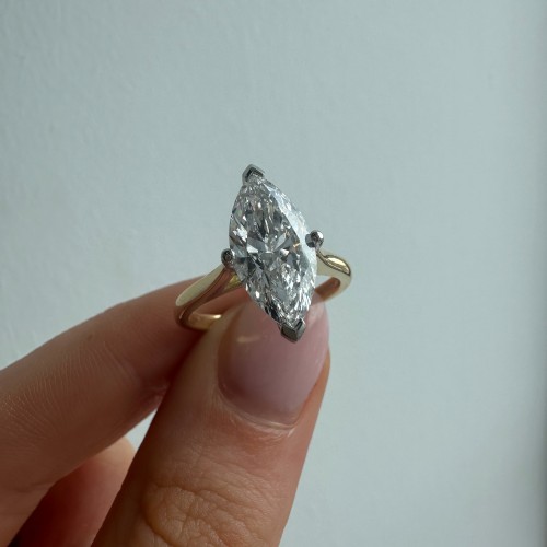 This exquisite engagement ring features a 2.56ct laboratory-grown marquise diamond elegantly set in a platinum head, offering both durability and brilliance. Crafted from 18ct yellow gold, its timeless solitaire design highlights the unique shape and cut of the diamond, making it a sophisticated symbol of lasting commitment.