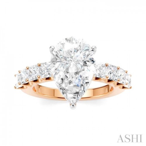 Make your love story unforgettable with this exquisite and meaningful semi-mount diamond engagement ring, which is more than just a piece of jewelry-it is a symbol of your love. At its heart lies a prong-raised marquise-shaped center mount, where a center stone of your choice, a marquise cut diamond ranging between 2.75 Ctw to 3.50 Ctw is installed. The beauty does not stop here, as the shank comes pre-embellished with 4 each fancy prong set 1/6 Ctw princess cut diamonds on either side. As you admire the ring from every angle, you will notice 10 sparkling microscopic split prong set round cut diamonds adorning the gallery region. The semi-mount engagement ring is molded in a rhodium finish 14 karat rose and white gold. The total diamond weight is 1 1/3 Ctw.