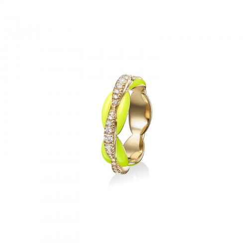 18k yellow gold ring with diamonds and neon green enamel