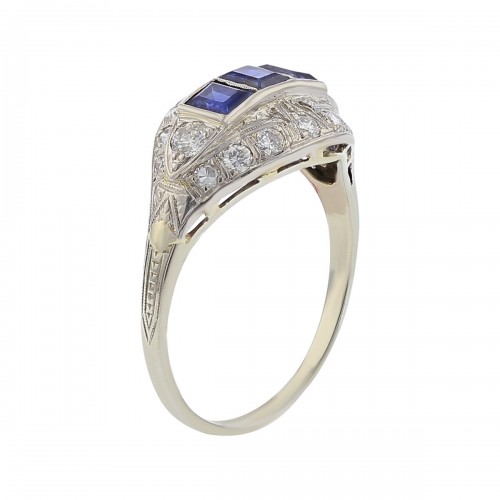 Mid-Century Emerald-cut Sapphire and Diamond Ring
