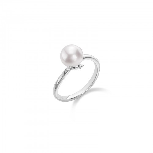 Mikimoto Akoya Cultured Pearl & Diamond Ring in platinum with diamonds totaling 0.39 carats.