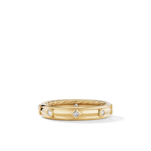 Modern Renaissance Band Ring in 18K Yellow Gold with Diamonds, Size 7