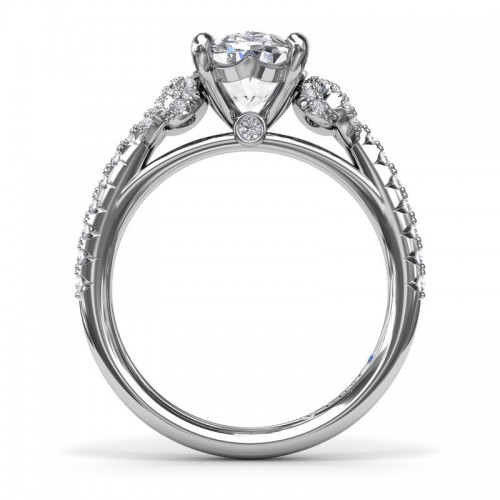 Intertwining with diamonds, this oval love knot engagement ring is flawlessly engineered to sparkle from every angle. This engagement ring can be special ordered in any finger size, in Platinum, 18KT & 14KT gold and can be customized for any shape and size centerstone.