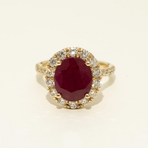 Oval Ruby Ring in 14kt Yellow Gold with Diamonds (1/3ct tw) CSRNG1675