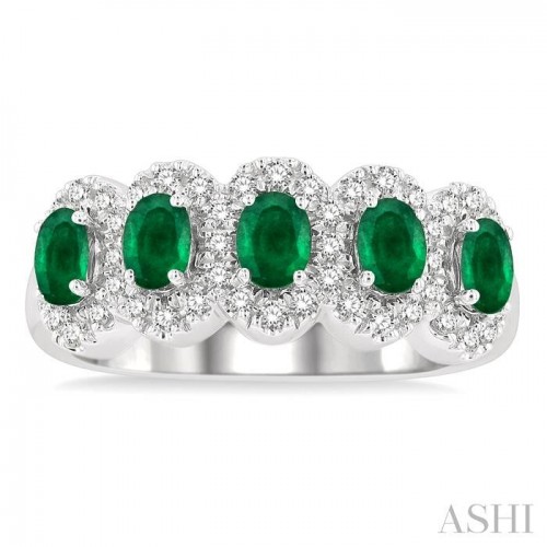 Oval Shape 5 Gemstone & Halo Diamond Wedding Band 46585PPFGEMWG