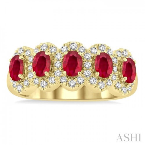 Oval Shape 5 Gemstone & Halo Diamond Wedding Band 46585PPFGRBYG