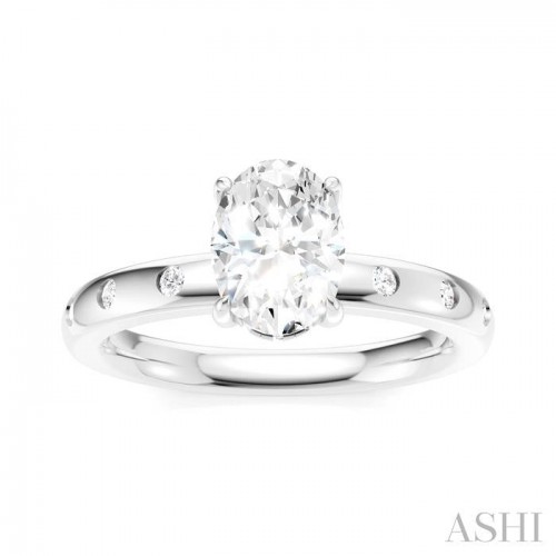 1/6 Ctw Oval Shape Round Cut Diamond Semi-Mount Engagement Ring in 14K White Gold