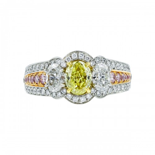 This ring features a stunning combination of 18k yellow gold, tourmaline and diamond gemstones. The tourmaline is the primary gemstone and complements the secondary diamond beautifully. The pastel collection offers a delicate touch of color, with a total carat weight of 2.85.
