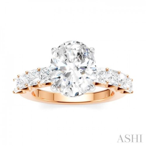 Make your love story unforgettable with this exquisite and meaningful semi-mount diamond engagement ring, which is more than just a piece of jewelry-it is a symbol of your love. At its heart lies a prong-raised pear-shaped center mount, where a center stone of your choice, a pear cut diamond ranging between 2.75 Ctw to 3.50 Ctw is installed. The beauty does not stop here, as the shank comes pre-embellished with 4 each fancy prong set 1/6 Ctw princess cut diamonds on either side. As you admire the ring from every angle, you will notice 10 sparkling microscopic split prong set round cut diamonds adorning the gallery region. The semi-mount engagement ring is molded in a rhodium finish 14 karat yellow and white gold. The total diamond weight is 1 1/3 Ctw.
