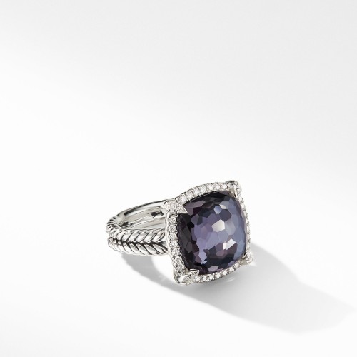 Sterling silver • Faceted morganite, 7 x 7mm • Pavé diamonds, 0.17 total carat weight • Ring, 4-11mm wide -Split-shank