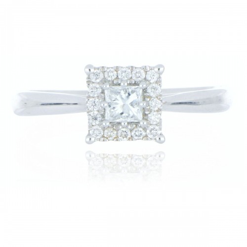 This ring is a true show stopper. An elegant sparkling pear-shaped diamond sits centre stage with a halo of dazzling diamonds surrounding it. All set in gleaming platinum, this ring will make you smile every day.