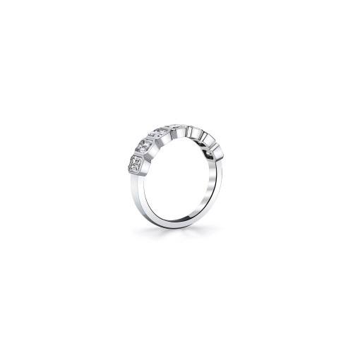 Sleek and contemporary, this platinum band features bezel-set diamonds arranged in a distinctive north–south orientation. The clean lines and secure settings create a modern look with understated brilliance.