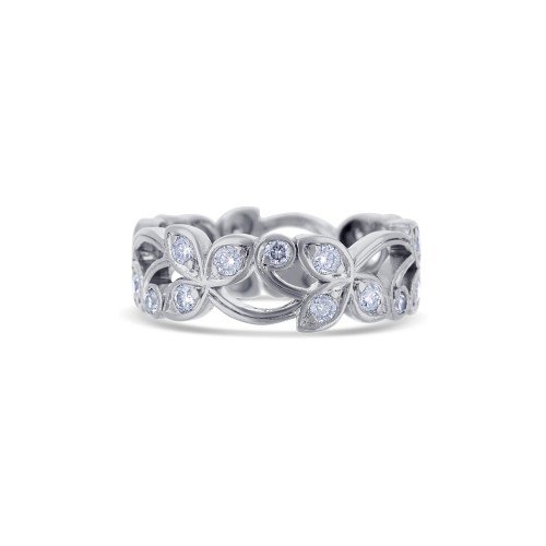 Platinum Round Diamond Flower Style Band