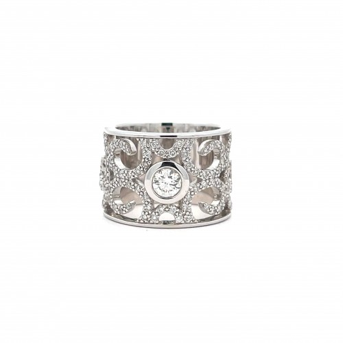 18 karat white gold Pomellato Iconica ring containing 0.40 carat total of diamonds.