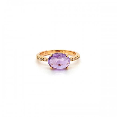 18 karat rose and white Blue Topaz diamond ring.
