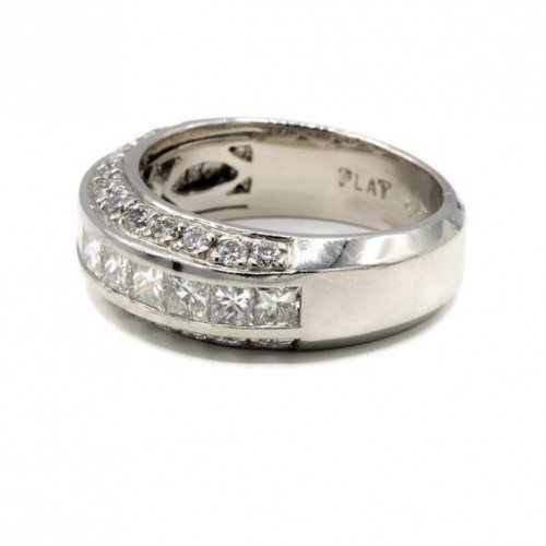 Band features princess cut and round diamonds with a total weight of 1.62 carats, I-J color, VS-SI clarity, set in Platinum.