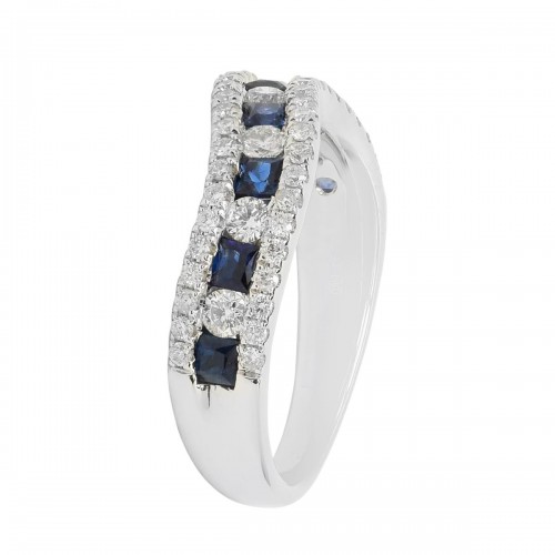 Elegance never looked so good. This sapphire and diamond curved band pair exquisite gemstones with a unique design, making this band a beautiful piece to wear on its own or match with an engagement ring.