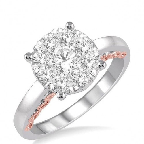 Make the most important statement of your life with this captivating milgrain finished Diamond Engagement Ring showcasing a large impressive 5/8 ct prong set princess cut center stone diamond complemented and accented by a luminous row of 16 round cut diamonds elegantly prong set in glistening 14 karat white gold. Total diamond weight is 1 ctw.