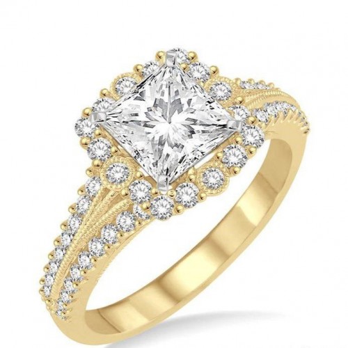 Princess Shape Halo Diamond Engagement Ring