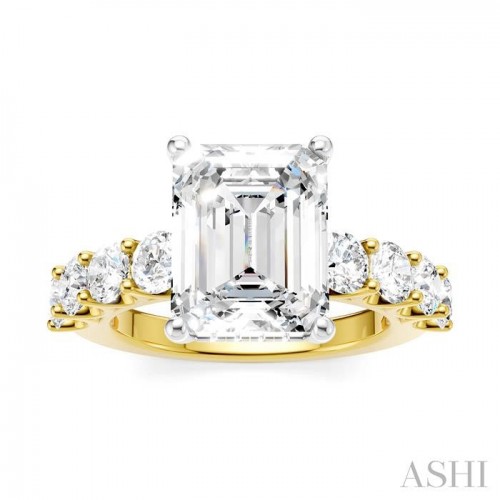 A charming semi-mount diamond engagement ring, this makes your proposal even more romantic with your personal touch added to it. The ring features a prong-raised princess-shaped center mount, ready for a center stone of your choice. This should be a princess cut diamond in the range of 2.75 Ctw to 3.50 Ctw. The shank comes pre-embellished with 4 each, 1/10 Ctw round cut diamonds on either side, adding to the elegance of the ring. Also, pre-adorning the gallery region are 16 microscopic split prong set round cut diamonds. A rhodium finished 14 karat rose and white gold offers luminous sophistication to the semi-mount diamond engagement ring. The total diamond weight is 1 1/3 Ctw.