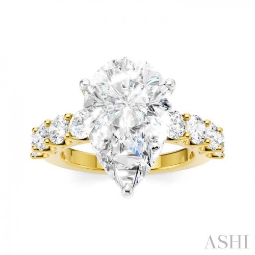 A charming semi-mount diamond engagement ring, this makes your proposal even more romantic with your personal touch added to it. The ring features a prong-raised princess-shaped center mount, ready for a center stone of your choice. This should be a princess cut diamond in the range of 4.50 Ctw to 5.50 Ctw. The shank comes pre-embellished with 4 each, 1/10 Ctw round cut diamonds on either side, adding to the elegance of the ring. Also, pre-adorning the gallery region are 16 microscopic split prong set round cut diamonds. A rhodium finished 14 karat yellow and white gold offers luminous sophistication to the semi-mount diamond engagement ring. The total diamond weight is 1 1/3 Ctw.